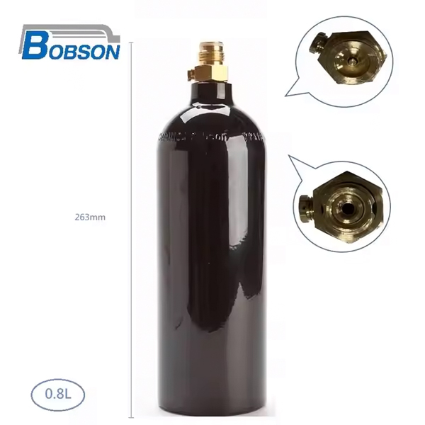 This is an 800ml custom CO2 aluminum cylinder rated for 1800 PSI, suitable for soda making, home brewing, and paintball applications. Made from lightweight, durable, and food-grade aluminum, it is refillable and ideal for both recreational and commercial use where a reliable CO2 source is needed.
